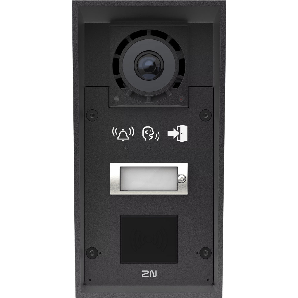 2N IP Force 2.0 is a ruggedized IP video intercom for indoor or outdoor installation. This model of 2N IP Force 2.0 has 1 call button, built-in 5 MP camera, and pictograms of instructions for using it. This model is also RFID card reader ready. As a video intercom, it has a 5 MP camera with wide-angle lens for viewing people with excellent detail in all lighting conditions. Adaptive face zooming picks out faces clearly and homes in on them, helping you identify who's at the intercom much more easily. The camera also supports QR code scanning, giving people a fast, secure contactless entry option. The video intercom even has built-in infrared lights for viewing people in complete darkness. For audio, IP Force 2.0 has a 10 W speaker and dual microphones backed by advanced noise cancellation, giving you clear, powerful sound. It uses adaptive volume technology to sense ambient sound levels and adjust the volume of the intercom in response, making IP Force 2.0 the ideal solution for loud or changeable environments. This model has pictograms to provide a visual guide to using the intercom.