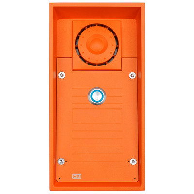 2N Helios IP Safety is a rugged, high-visibility intercom for emergency situations. Designed to be extremely durable and vandal-resistant, IP Safety has a chassis cast out of aluminum and is rated IP69K and IK10. It can withstand high-pressure, high-temperature washing. This emergency intercom is a bright orange (RAL 2004) for high visibility in critical situations. 2N 01355-001 has a single, bright red emergency button. The intercom can control two electric locks and lets you connect an additional switch. 2N 01355-001 is a full-duplex intercom with a 10W loudspeaker and dual built-in microphones, so you get clear, loud sound, even in a subway tunnel, on the factory floor, or wherever else you install it.