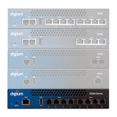 Voice quality through the Digium G400 gateway is improved through an Octasic DSP processor, echo cancellation and more. Additional features onboard the gateway include intelligent call routing, fax and modem support, security protocols, troubleshooting tools and low power consumption. The gateway supports up to 120 concurrent calls, four T1 ports and two gigabit-Ethernet network ports.