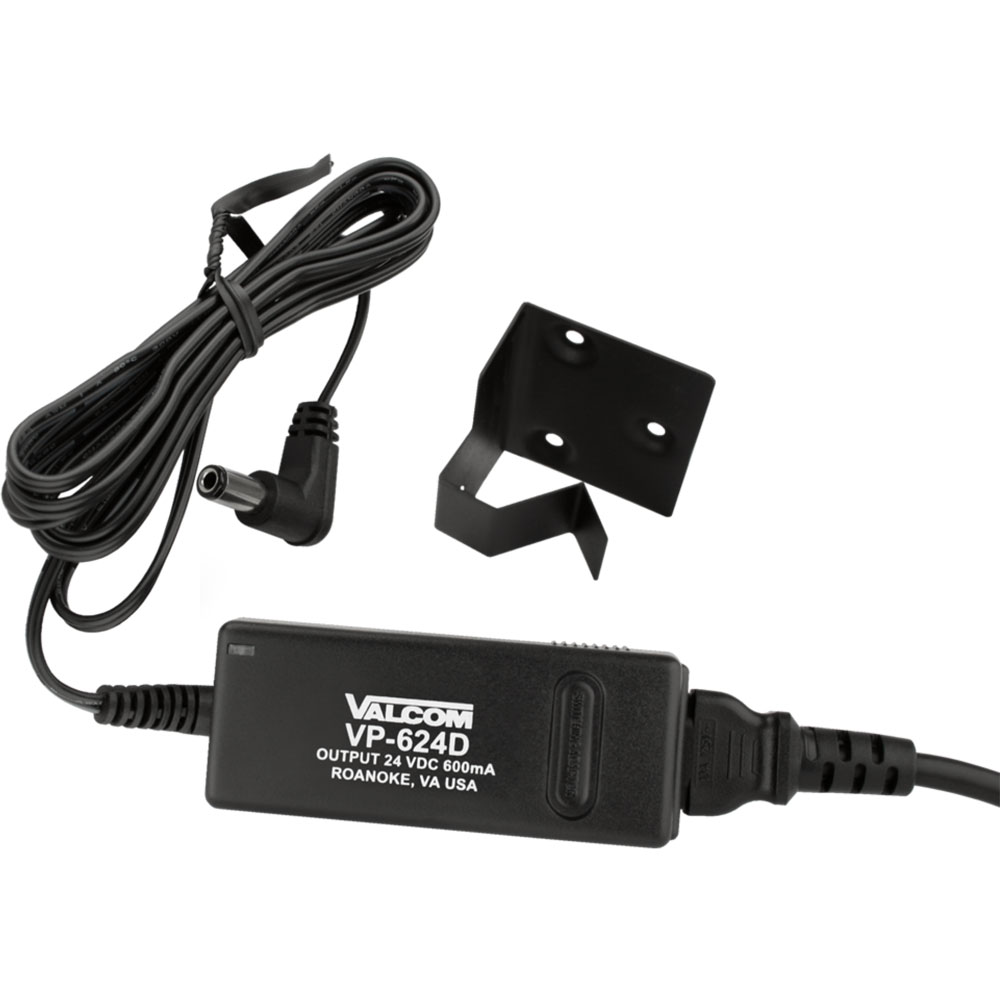 Valcom VP-624D is a regulated, filtered 600 mA, 24 VDC digital power supply. Designed for a 20-year lifespan when used in a typical paging system, VP-624D is exceptionally well-built. It meets numerous federal and state energy requirements, including ENERGY STAR. And it's UL listed. Use it indoors only. Mount the power supply on a wall or rack/rail; the package includes a wall mounting bracket.
