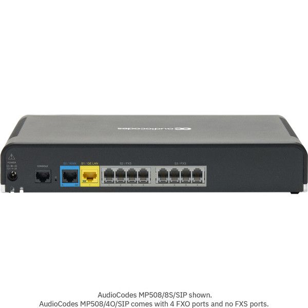 AudioCodes MP508/4O/SIP is a VoIP gateway for connecting an analog PBX system to a VoIP phone system. This model of MediaPack 508 has four FXO ports. It is a SIP gateway and is compatible with many SIP trunks and VoIP phone services.
