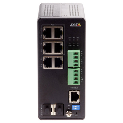 Axis D8208-R is an industrial-grade 8-port managed POE network switch. Power connected network devices using this switch, which supports up to 90 W of power per port. It has a total POE power budget of 480W. Six of the RJ45 ports are Gigabit Ethernet plus two even faster 2.5 Gigabit Ethernet ports. Rapid Ring ensures high availability at all times. Manage it using the familiar, intuitive Axis UI, which includes features like graphic topology to simplify network management.