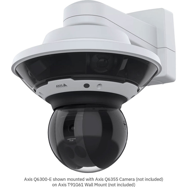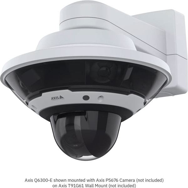 Note: Axis Q6300-E is designed to be used with compatible Axis Q61, Q63, or P56-E Series PTZ Cameras (not included). When used with a P56-E Series Camera, the TP6902-E Adapter Bracket (not included) is required. If you wish to use Q6300-E as an independent 360° panoramic camera, the TQ6812-E Solo Kit (not included) is required.