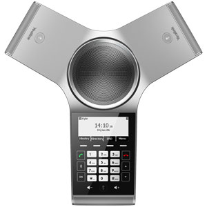 CP920 is a SIP conference phone with a silver three-point design. The touchscreen interface calls back to a traditional phone, making it easy to use.