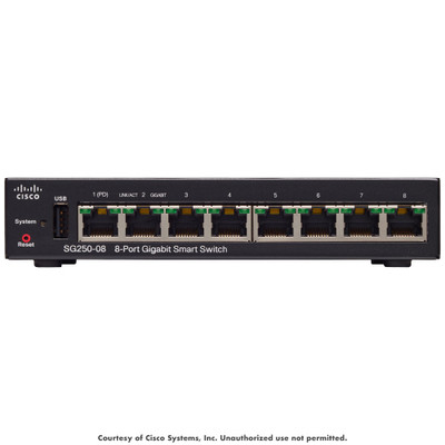 SG250-08HP simplifies networking for you. Cisco's integrated smart technology takes care of the important functions, while still giving you extensive options. Optimize your network for applications like VoIP with 256 VLANs and QoS support. Secure your network with 802.1x port security, DoS attack prevention, and more. Cisco 250 Series Smart Switches meet the Energy Efficient Ethernet standard to save on energy costs and protect the environment.