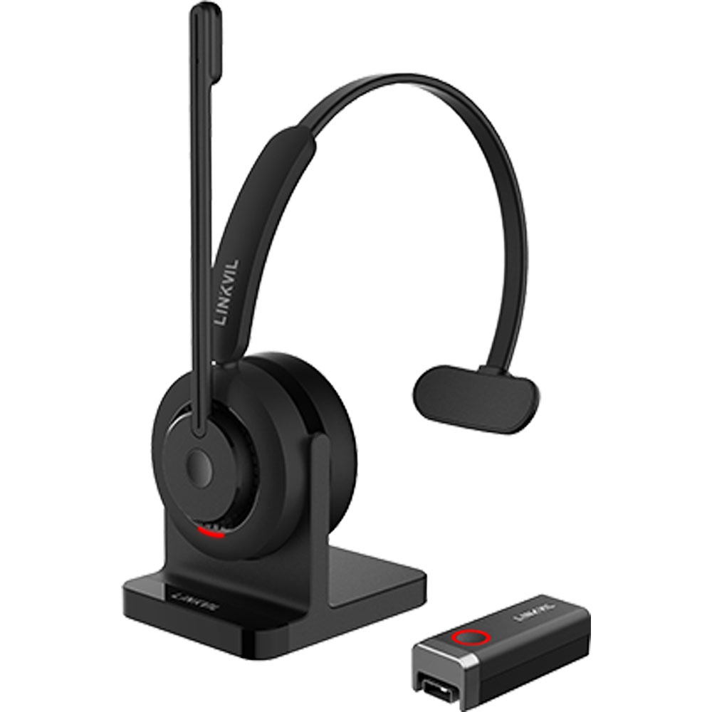 LINKVIL DH301D is a professional headset with professional audio quality. Its noise-cancelling microphone is improved by AI noise cancellation, so your voice will always be clear and strong. Its 32 mm speaker delivers full-bodied sound, helping improve comprehension. To reduce distractions in the office, it has a hybrid visual busylight that tells people at a glance when you're on a call. DH301D is built for all-day comfort with ergonomic, lightweight design: it only weighs 100 grams. Charge it using either the included charging stand or USB cable.