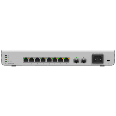 Netgear GC510P is a fully-integrated, cloud-managed network switch that offers 10 ports of Gigabit Ethernet speed with 8 ports of PoE+ power. GC510P has 8 RJ45 ports for copper that all support PoE, as well as 2 dedicated SFP ports for fiber. Part of the Netgear Insight Series of cloud-managed switches, GC510P lets you setup and monitor your network, even across multiple locations, from anywhere, on devices ranging from smartphones to tablets to laptops using the Netgear Insight app. The switch has a bandwidth of 20 Gbit/s, a total PoE+ power budget of 134W, and supports 256 VLANs. PoE+ power allows you to drive more power-intensive devices like IP security cameras.