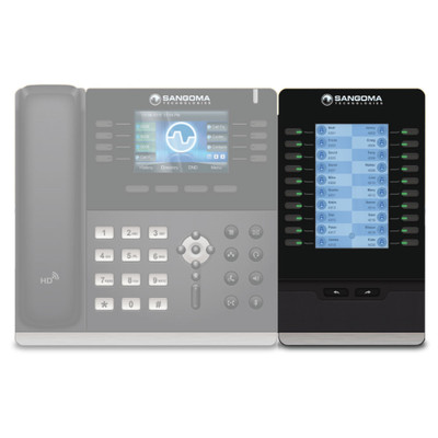 Sangoma PM200 is an expansion module for adding programmable feature keys to compatible Sangoma P-Series IP Phones. PM200 features a 4.3-inch color display, making text easy to read. The 20 keys have multi-color LEDs to indicate line status. The expansion module supports 3 pages, giving you 60 additional feature keys in total.