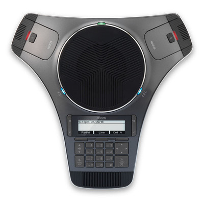 Snom C52-SP uses DECT to communicate with the conference phone, which gives it a potential wireless range of 50m (164ft). It offers up to 12 hours of talk time, so you won't be hurting for power even in long group calls.