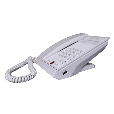 TeleMatrix 3502MWS is a 2-line analog hotel phone ideal for communal locations or lounge spaces. This phone comes with a built-in speaker allowing for hands-free conversation. With the 2-line appearance, 3-way conference calls can be made. LED call indicator light helps users manage calls and patented One Touch voicemail retrieval helps anyone use the phone without the hassle.