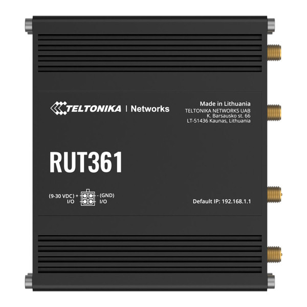 Teltonika RUT361 is an industrial cellular router with ultra-fast 4G LTE Cat 6 connectivity with carrier aggregation. Use RUT361 for IoT (Internet of Things) applications. Because the router supports 4G LTE Cat 6, you get download speeds of up to 300 Mbps and upload speeds of up to 50 Mbps. The router also supports Wi-Fi 4 and has two Fast Ethernet ports. Automatic failover switches connectivity in response to conditions, ensuring network continuity and making RUT361 an ideal choice for critical installations.