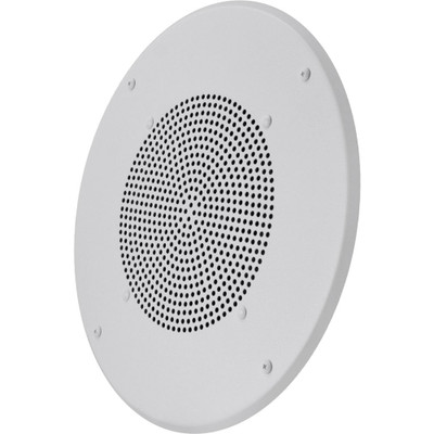 Install the Valcom VIP-120A-IC ceiling speaker in your InformaCast environment. The speaker connects via an RJ45 switch port with Power over Ethernet support. A single Ethernet cable provides paging and power to the loudspeaker. The built-in AUX port supports a secondary amplified speaker.