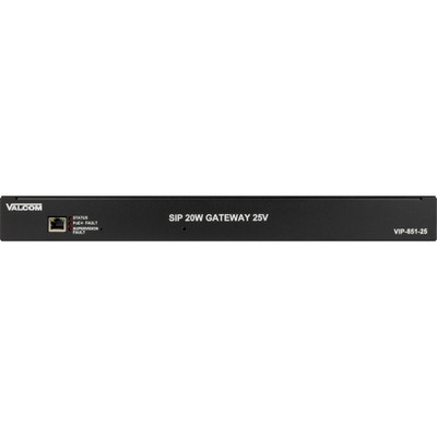 Get an IP gateway for use with Singlewire InformaCast paging systems. Valcom VIP-851-25-IC enables voice access to one zone of one-way paging over the IP network, which lets you extend paging zones and improve the coverage of your paging system. This gateway has a port to provide a line-level signal that can drive up to 40 compatible self-amplified speakers. It has another port that is a 25-Volt output for providing up to 20-Watts of audio power. VIP-851-25-IC is made from steel with a black powder coated finish. It can be wall or rack mounted. Power it via POE (Power Over Ethernet).
