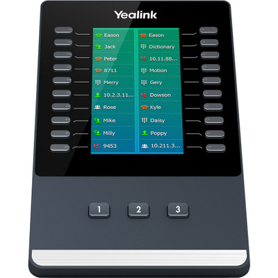 Add up to 60 additional keys to your Yealink VoIP phone with EXP43. Yealink EXP43 is compatible with Yealink T43U, T46U and T48U IP Phones. The expansion module has a large 4.3-inch color display with 20 physical keys — each of which has a dual color backlight. With support for 3 pages, you get a maximum of 60 keys — for use for speed dial, BLF, forward, transfer and more. Use up to 3 EXP43 modules with a single phone for an incredible 180 potential additional keys.